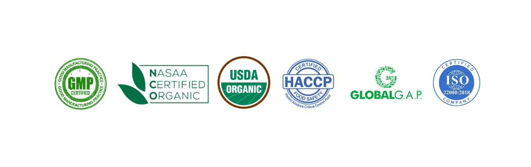 当社のマッシュルームはすべて有機栽培されたもので、栽培から抽出、包装までの全工程は、世界的なGAP基準および国際GMP基準に準拠しており、最高水準の製造方法を保証しています。